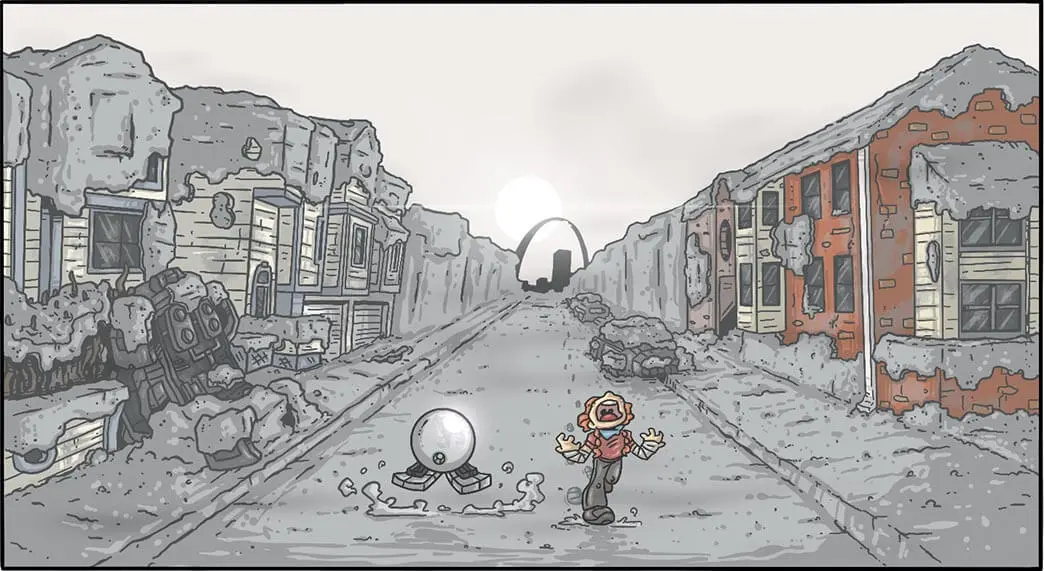It began as a 6-page story but ultimately changed to a 12-page story (as if I wasn't nervous enough already) about a younger version of the book's protagonist (Thea Gale, the Dorothy of this IP) on a mini-adventure with her robot companion, TOTO, as she journeys across a post-apocalyptic wasteland to St. Louis to meet up with her Uncle.