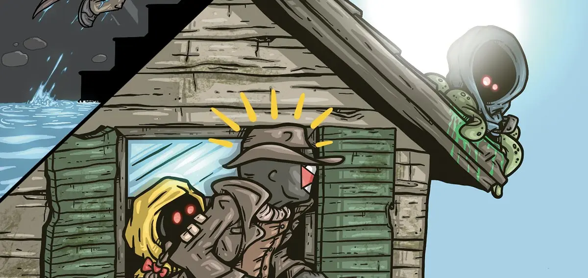 I'm guessing TUG was pretty happy with how it turned out because I was commissioned a couple years later to work on a second ashcan for his next campaign, Hunt the Littlest Umbrella. I've completed work on it, but there has yet to be any formal announcement of it being included, so for now I'll just share this one panel, which gives away absolutely nothing and hopefully won't get me in trouble.