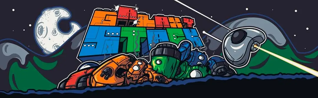 Words cannot express how genuinely excited I was for this game, and even more excited that I got to make the artwork for the banners. Deathchron is basically a mech version of Master Blaster. You’re a kid who has control of this giant robot, and you run and gun through all kinds of glorious pixel carnage. You can also exit the mech a la Master Blaster to perform exploratory tasks. For the artwork, I chose to use a streak of x-ray light going through the mech to reveal the boy controlling it from the inside. The boy’s t-shirt and chair design are homages to one of my favorite movies, Flight of the Navigator.