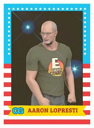 Bio: Aaron Lopresti may seem like your everyday, good-natured, Christian family man... But get that 6'2" giant in the ring and he becomes a wild Wraith of God, a Garbage Man taking out the jabroni trash. The blind rage only ever switches off when his wife Shelley reminds him that the sun's gettin' real low... While he's yet to rack up a win in the CGWF, he's easily won the crowd, being a fan favorite amongst Comicsgate Wrastlin' fans. Record: 1 win, 5 losses Matches: