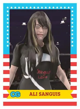 Bio: Ali Sanguis is a Fantasy & SciFi Author/Editor from the United States. When she's not working on her horror-themed comic, Eggbeater, she's bleeding her opponents black in the squared circle... whatever that means. Record (Solo): 0 wins, 3 losses Matches: