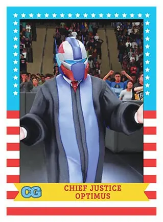Bio: It's unknown whether Chief Justice Optimus is man, machine, or something in between - but when he drops the gavel of justice in the ring, those accused shall feel his wrath! Or something like that. The Graded Point Five ring leader has only made one appearance in the arena and was dispatched on night one of the King o'dat Thing tournament by Wyatt Holliday... but I trust we've not heard the last of ol' Optipops. Record: 0 wins, 1 loss Matches: Entrance Track: "Order in the Ring" by Six AM Comics |