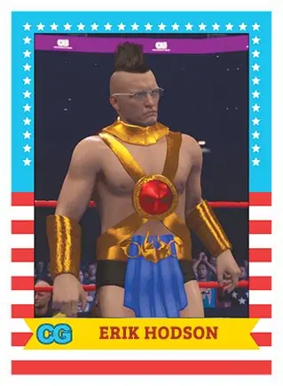 Bio: Adam Miller began as that guy who kept winning fan art contests... But soon became the man who defended the CGWF's honor when he took down Doug TenNaple at the Royalest Rumble. Trained (and later betrayed) by Andy Smith, Miller is an ex-cop turned digital artist who enjoys two things in life... Making art and breaking hearts. Literally breaking hearts. The man is so swole he'll punch a hole straight through your sternum. Record: 1 win, 1 loss Matches: