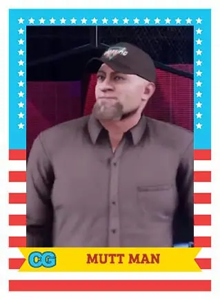 The other right-hand man to Vince McSix, Muttington Man the Third, helps co-host the Breaking Rad division of the CGWF and gives insight into the overall enthusiasm of the audience. A victim of crippling IBS, Mutt-Man is stationed inside of a plexiglass porta-potty hovering high above the Breaking Rad Arena in Fort Worth, TX, nicknamed the "Brown Eye in the Sky".