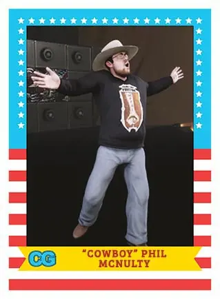 Cowboy Phil serves as co-host of the CG Primetime division alongside Le Pod God partner Mark Poulton. A fellow pro wrestling enthusiast, he helps provide play-by-plays for all Primetime matches. That is, when he isn't suffering the paralyzing effects of COVID, which he contracts so frequently that he's earned the secondary title of "The Covid Cowby".