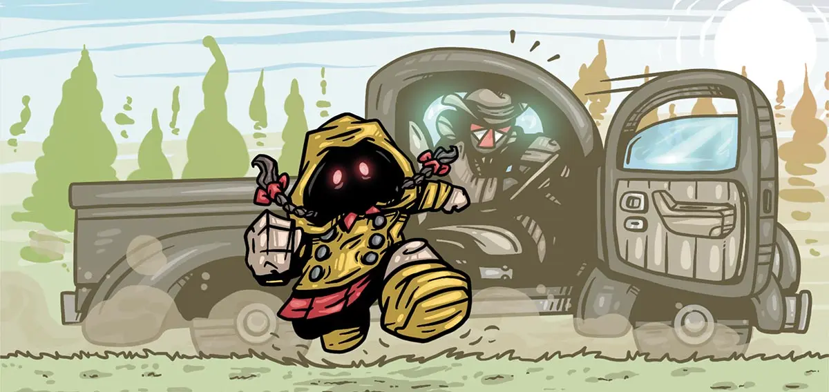 I'm guessing TUG was pretty happy with how it turned out because I was commissioned a couple years later to work on a second ashcan for his next campaign, Hunt the Littlest Umbrella. I've completed work on it, but there has yet to be any formal announcement of it being included, so for now I'll just share this one panel, which gives away absolutely nothing and hopefully won't get me in trouble.